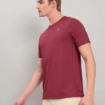 Men Solid Slim Fit Crew Neck T-shirt with TECHNO COOL+ Sky (The color can be slightly different) Red